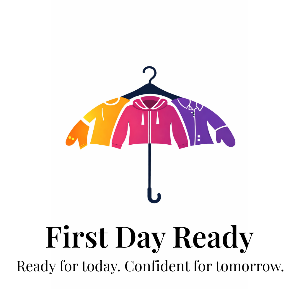 First Day Ready is a nonprofit organization dedicated to breaking down barriers to education by ensuring that every child has access to clean, well-fitting clothing. We believe that when children feel confident in what they wear, they can focus on what truly matters—growing, learning, and thriving. Our mission is to remove the stigma and stress associated with clothing insecurity, allowing students from everyday families to enter the classroom ready to succeed.